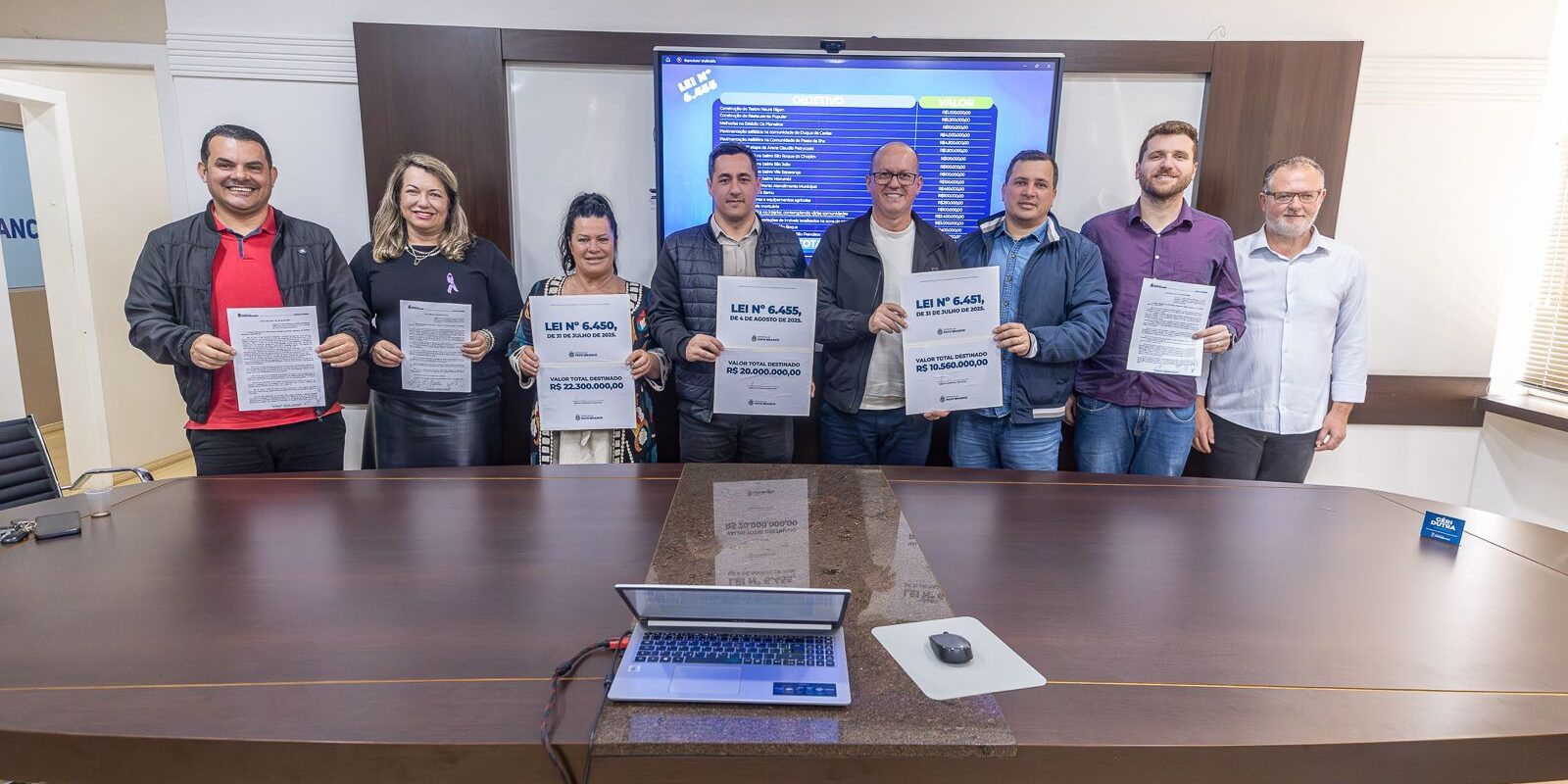 Em coletiva de imprensa realizada nesta quinta-feira (7), no Gabinete Municipal, a Prefeitura de Pato Branco apresentou oficialmente as leis que autorizam a contratação de operações de crédito junto a importantes instituições financeiras, totalizando R$ 52.860.000,00 em recursos. O montante será utilizado para garantir contrapartidas e investimentos em obras essenciais para a cidade, com foco em infraestrutura, saúde, educação, esporte e urbanização.