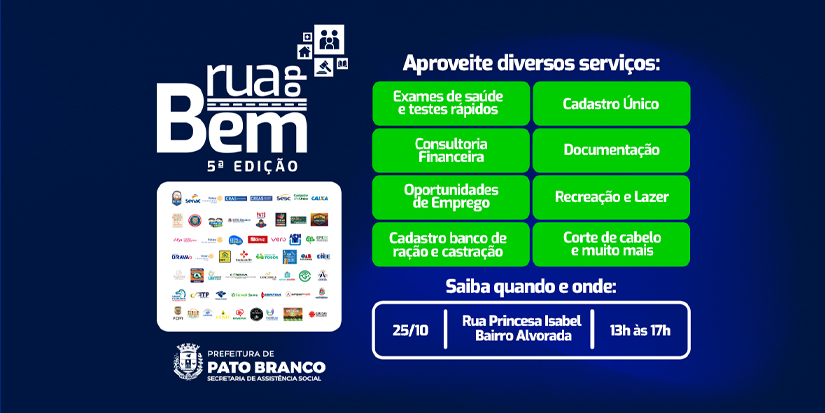 “A Rua do Bem é uma iniciativa que reforça o compromisso da Prefeitura de Pato Branco com a inclusão social, o acesso a direitos e o fortalecimento das comunidades. Por meio da parceria entre o poder público, empresas e organizações sociais, a ação mostra que quando todos se unem, o impacto positivo é muito maior”, concluiu Centenaro.